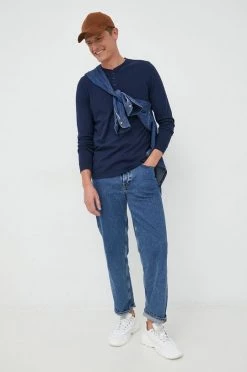 Ανδρικά Μακρυμάνικα Βαμβακερή μπλούζα με μακριά μανίκια GAP ναυτικό μπλε